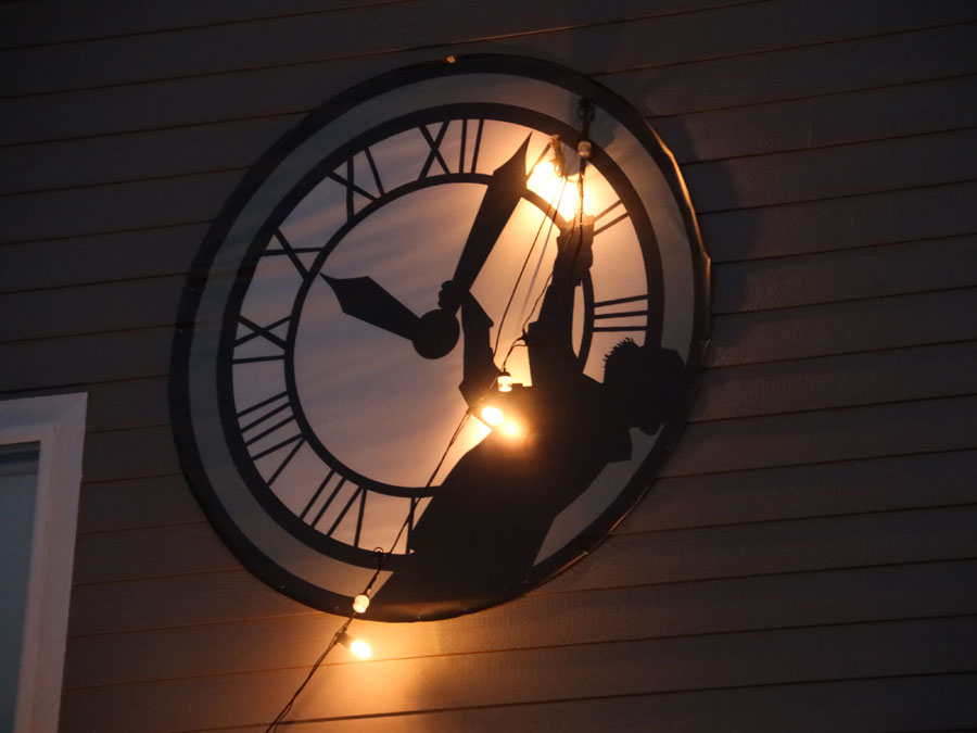 | The garden will be forever growing and changing. Just like the rooms inside the house, the garden themes are drawn from popular time travel fiction. The Wonderland Chronosphere is where small things can become enormous and time seems to fly...in summer. The Einstein-Rosen bridge or Rainbow bridge is a great place to start. The Red Forest accents invite us to dream about our most cherished memories as depicted in scenes from the TV show Twelve Monkeys. There are three cherry trees named Romeo, Juliet and Valentine. Raspberries and gooseberries are also there. The Stargate in the center of the garden symbolizes a passageway to all other worlds and dimensions. Do you recognize the constellations around the edge of the gate? The Stargate Treehouse is a where you can read about crop circles and observe birds in the field. |