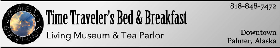 | Carol is a former Back to the Future III cast member. Movies are the nearest thing we have to real time-travel and this BandB is the perfect way to share that experience with you. Additionally, she is a former Walt Disney Imagineer. (Imagineering is the theme park design and development arm of the Walt Disney Company.) Combining time travel with an Imagineering's sensibilities has resulted in this one-of-a-kind immersive experience for Alaskans and other travelers. Alaska is the land of adventure where time is measured differently. Your best staycation is right in the heart of Palmer. Bring your family! -->> Check availability on my VRBO listing or Air BandB listing. Reservations made directly by phone win you a full breakfast buffet every day of your stay. |